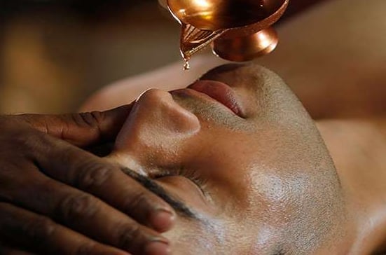 This purifying and rejuvenating therapy is designed to eliminate toxins, mental exhaustion, stress, restores balance to the mind, body, and spirit through a gentle stream of warm herbal oil, medicated milk, or buttermilk poured onto the forehead.